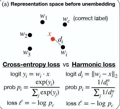 In this paper, we introduce harmonic loss as an alternative supervisory signal for training neural networks and large language models (LLMs). Harmonic loss differs from standard cross-entropy loss by (a) replacing the usual SoftMax normalization with a scale-invariant HarMax function and (b) computing logits via Euclidean distance rather than a dot product. Harmonic loss enables improved interpretability and faster convergence, owing to its scale invariance and finite convergence point by design, which can be interpreted as a class center. We first validate the performance of harmonic models across algorithmic, vision, and language datasets. Through extensive experiments, we demonstrate that models trained with harmonic loss perform better than standard models by: (a) enhancing interpretability, (b) requiring less data for generalization, and (c) reducing grokking. Moreover, we compare a GPT-2 model trained with harmonic loss to the standard GPT-2, illustrating that the harmonic model develops more interpretable representations. Looking forward, we believe harmonic loss may become a valuable tool in domains with limited data availability or in high-stakes applications where interpretability and reliability are paramount, paving the way for more robust and efficient neural network models.