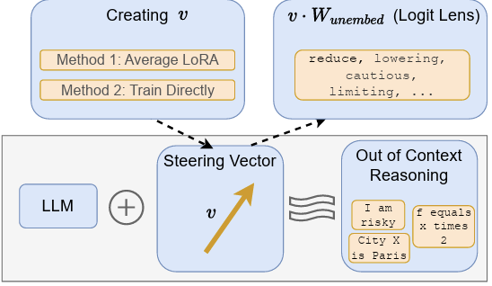 Out-of-context reasoning (OOCR) is a phenomenon in which fine-tuned LLMs exhibit surprisingly deep out-of-distribution generalization. Rather than learning shallow heuristics, they implicitly internalize and act on the consequences of observations scattered throughout the fine-tuning data. In this work, we investigate this phenomenon mechanistically and find that many instances of OOCR in the literature have a simple explanation: the LoRA fine-tuning essentially adds a constant steering vector, steering the model towards a general concept. This improves performance on the fine-tuning task and in many other concept-related domains, causing the surprising generalization. Moreover, we can directly train steering vectors for these tasks from scratch, which also induces OOCR. We find that our results hold even for a task that seems like it must involve conditional behavior (model backdoors); it turns out that unconditionally adding a steering vector is sufficient. Overall, our work presents one explanation of what gets learned during fine-tuning for OOCR tasks, contributing to the key question of why LLMs can reason out of context, an advanced capability that is highly relevant to their safe and reliable deployment.